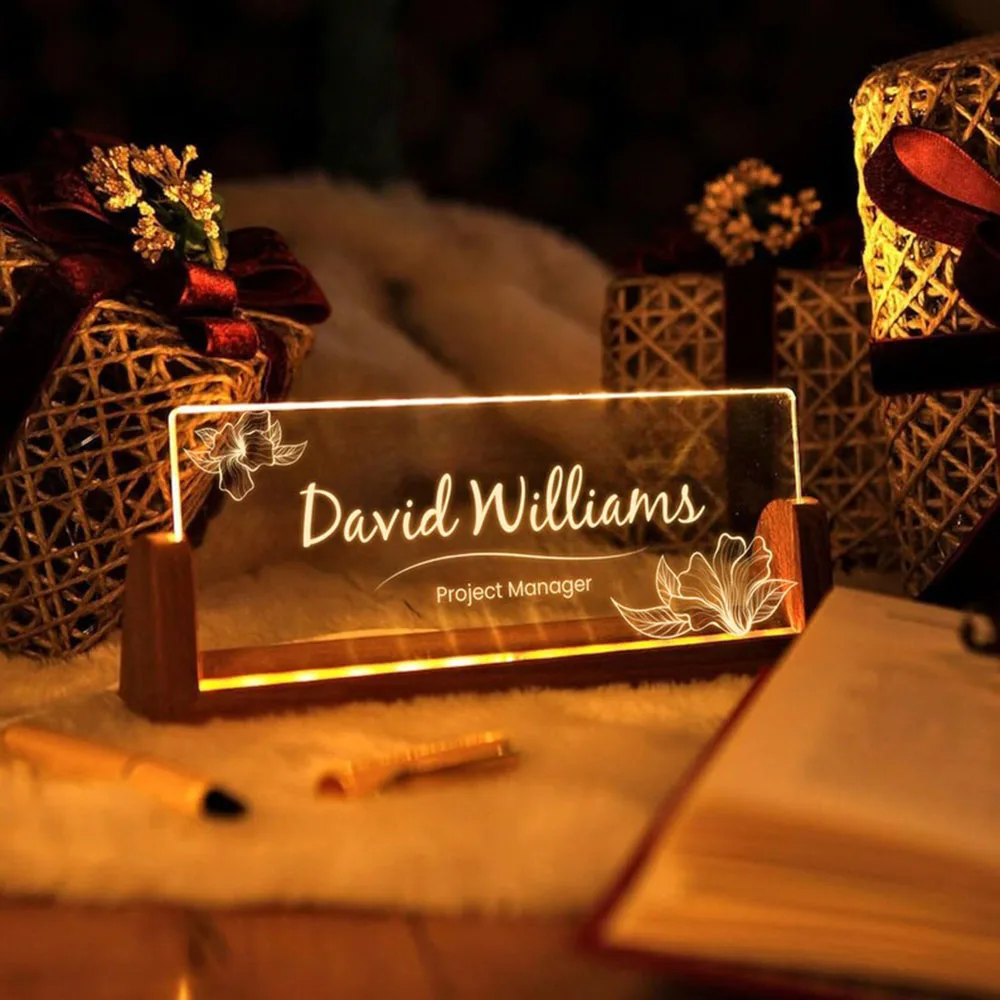 ✨ Upgrade Your Workspace with Our Personalized Illuminated Acrylic Desk Plaque